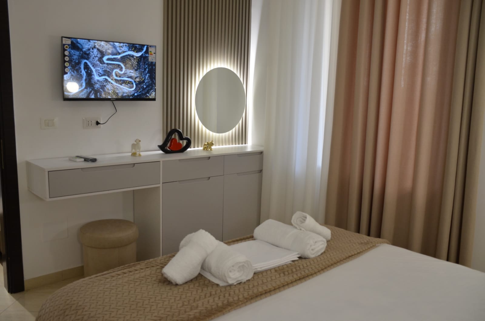 The well-equipped kitchen has a stovetop, a refrigerator and an oven. The spacious air-conditioned apartment features a flat-screen TV with satellite channels, a washing machine, a seating area, a dining area as well as mountain views. The unit has 3 beds.